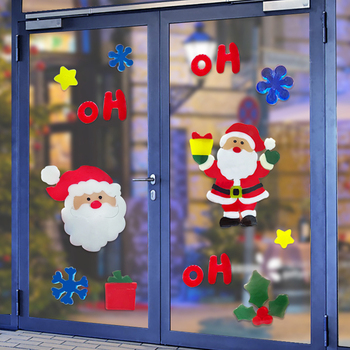 थोक ओएम कस्टम क्रिसमस शीतकालीन स्नोफ्लेक सेंटा क्लॉस एल्क उपहार खिड़की से सटा हुआ ग्लास दीवार कमरे pvc स्टिकर